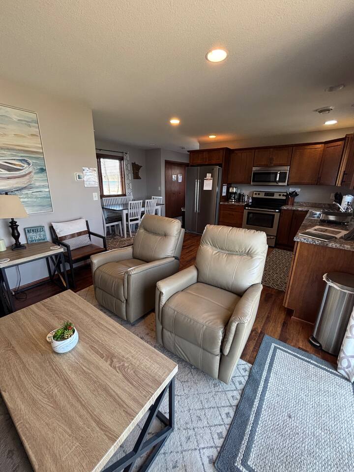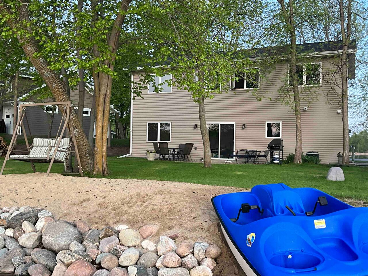 Wake up to lakeside views at Sugar Beach Retreat, where a flat, zero-step lot and sandy beaches make fun easy for all ages. Paddle boards, kayaks, a lily pad, splash pad, and lawn games keep everyone entertained, while Xbox and Wii add indoor fun. Gather around the fire pit at sunset, then relax in modern comfort. Just 15 minutes from Detroit Lakes and 45 from Fargo, this retreat promises endless family memories—reserve your getaway now!