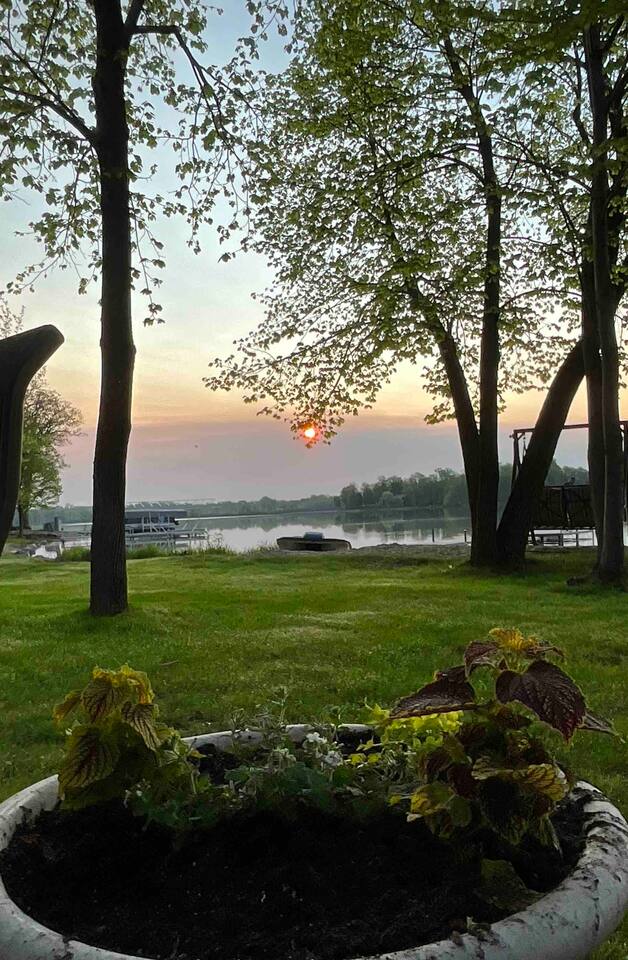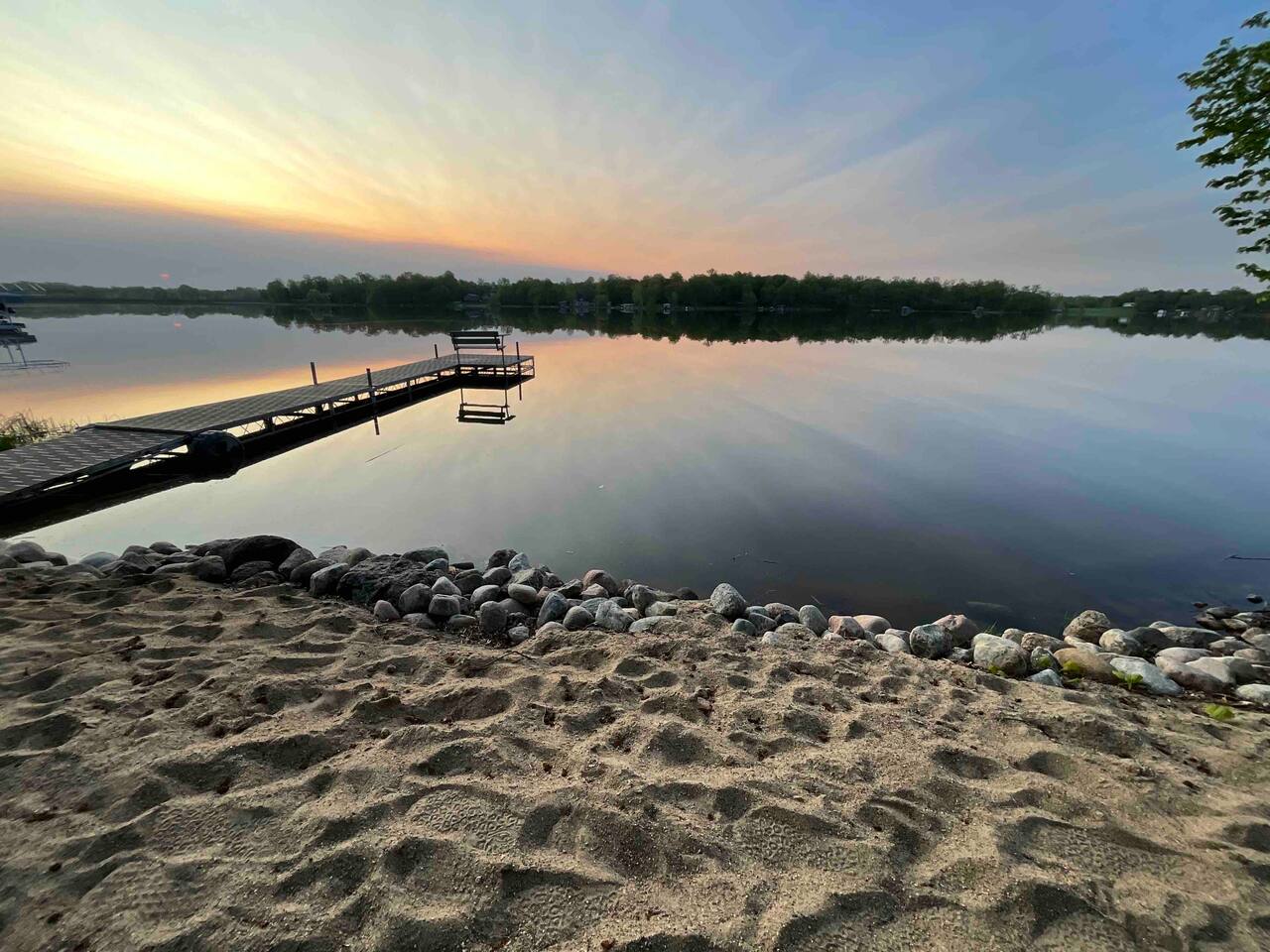 Sugar Beach Retreat is located on Sugar Island. The island is accessible via a paved road lined by Little Cormorant Lake on both sides. We have wonderful neighbors on either side of the house and lake on both the front and the back of the home which offers stunning sunrise and sunset views!