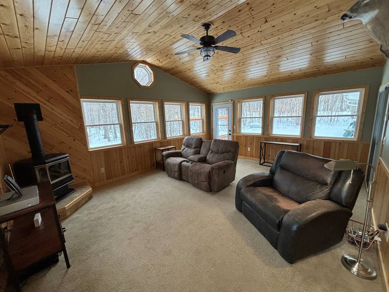 *Home setting* Whispering Woods can be found in a remote, peaceful location on gravel roads (for about 3 miles). *Main Fireplace* The main stone fireplace is non-functional in 2026 going forward. *Surrounding Lakes* The house is perfectly centered in the heart of MInnesota lakes country. It is located right next to Crystal Lake (3.5 miles to the public access point), Lida Lake (2.7 miles to the public access point) and Lake Lizzie (8.1 miles to the public access point). *Beach Access* Maplewood State Park is located just 9.5 miles away and provides a perfect beach setting along with plenty of hiking and outdoor nature opportunities. *Weather Cancellations* Please note that refunds are not available for weather related cancellations or delays.