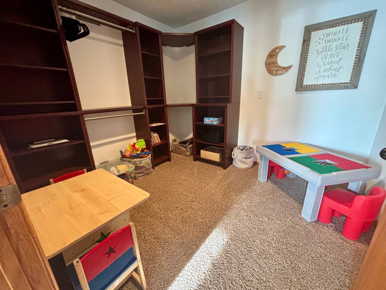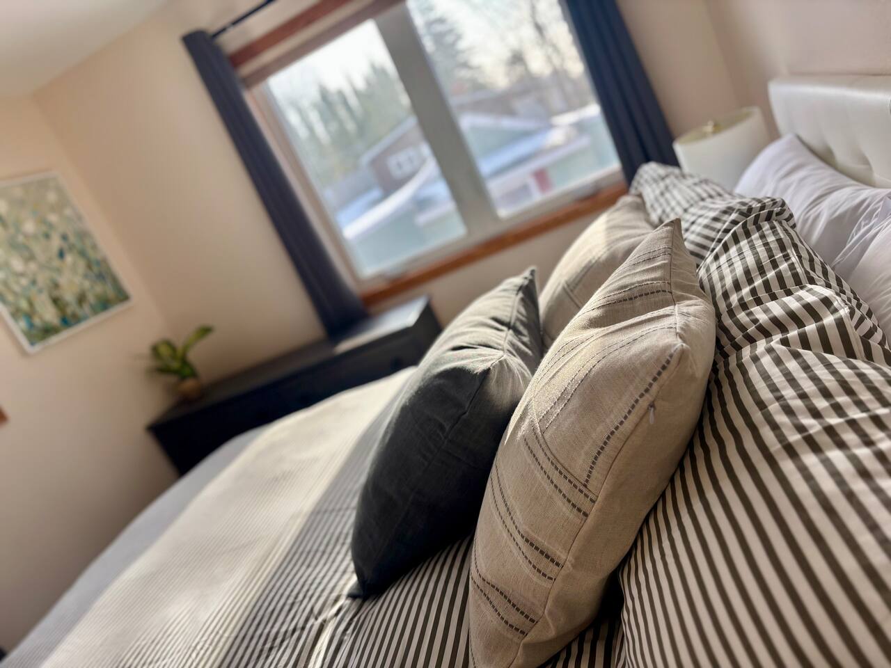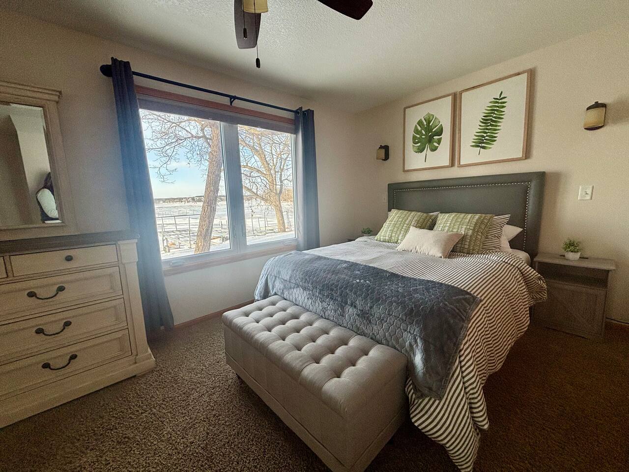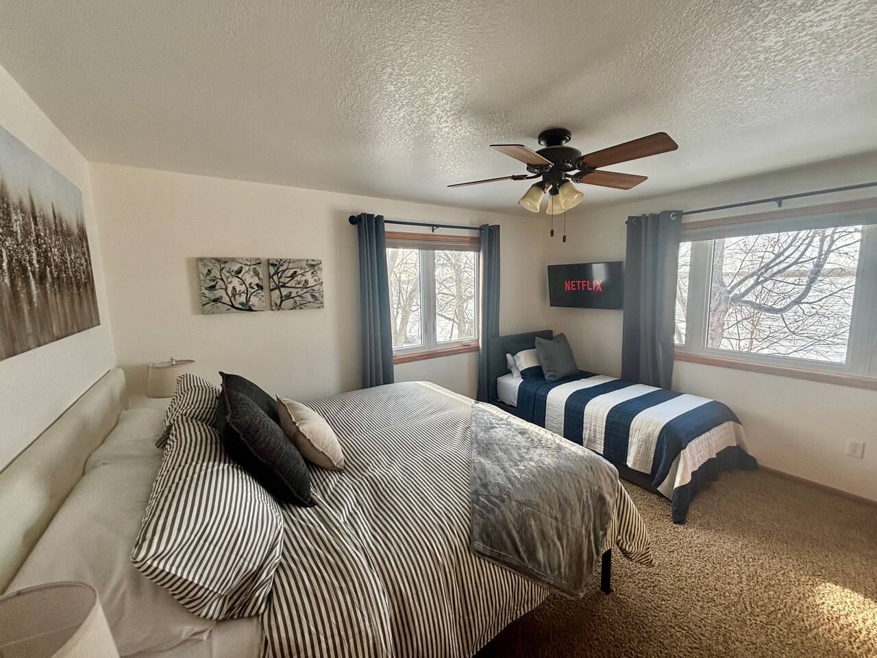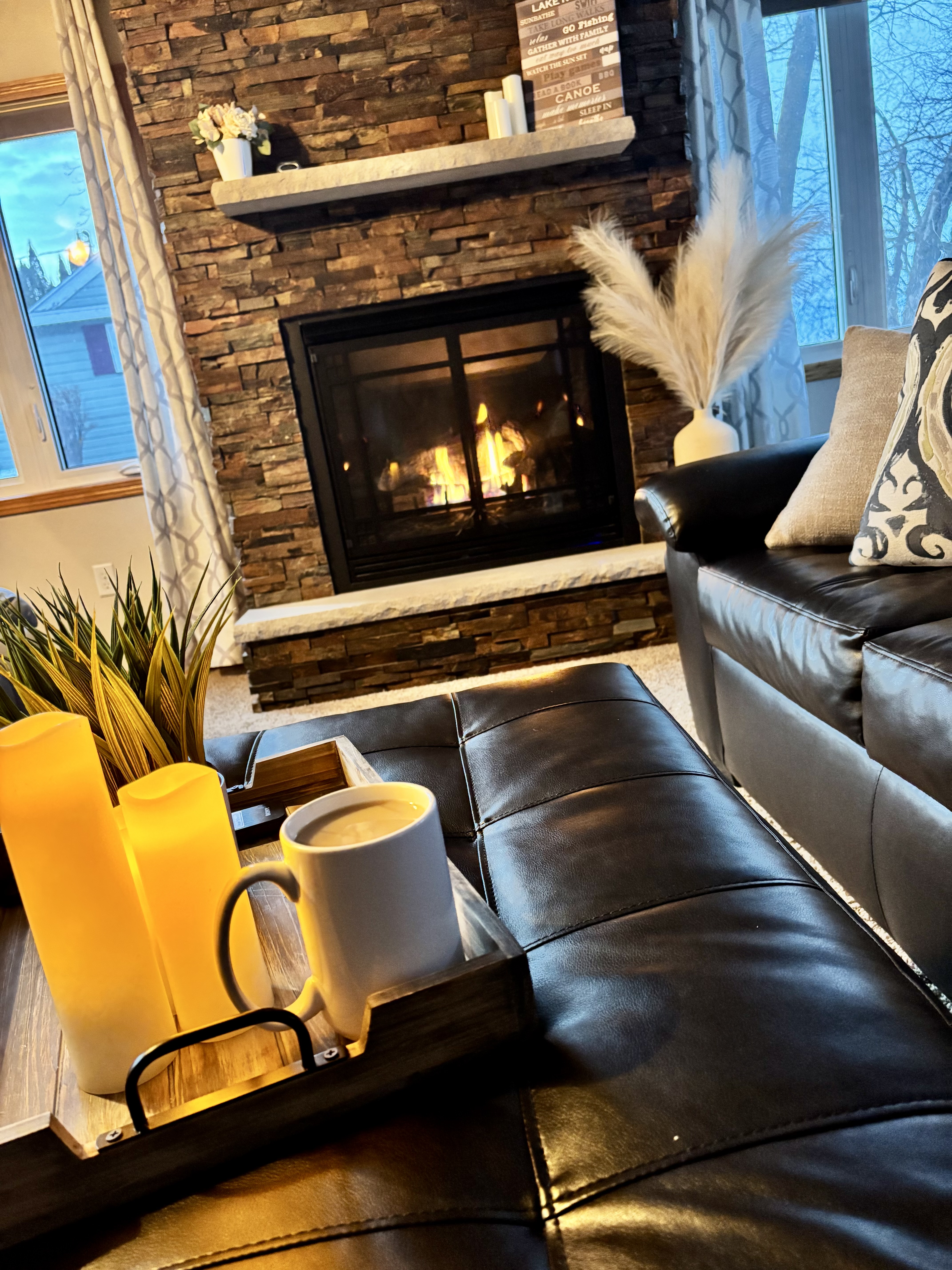 Sunset Beach Getaway is the kind of place where families slow down, spread out, and truly reconnect. From the moment you step inside, the open-concept main floor welcomes you with space to gather, laugh, and linger. Sunlight pours through large windows into the living room, where a cozy natural gas fireplace sets the tone for relaxed mornings, board-game afternoons, and quiet evenings after a day on the lake. The heart of the home is the fully stocked kitchen—designed for real cooking and shared meals. With every appliance and amenity you need, it’s easy to prepare everything from pancake breakfasts to holiday-style dinners. The dining area comfortably seats 13, with a high chair ready for the youngest guest, making this home ideal for multi-generational stays. Just off the main living space, the spacious primary bedroom offers a peaceful retreat with a queen bed, while the large main-floor bathroom feels spa-like with double sinks, heated floors, and a jet tub/shower combo. A washer and dryer on the main level make longer stays effortless. Upstairs, the home continues to impress with thoughtfully designed sleeping spaces for every age and stage. One bedroom features a queen adjustable bed for customized comfort, while another offers a twin-over-full bunk plus an additional twin—perfect for kids or teens. Two generous bedrooms feature California king beds, one paired with a twin bed and the other connected to a dedicated children’s playroom filled with LEGO Duplos, a train set, blocks, an art table, and books—giving kids their own space to imagine and play. The upstairs bathroom includes a roomy tiled walk-in shower with a removable shower head, making mornings easy for groups. Entertainment extends beyond the house into the heated detached garage game room—a favorite gathering spot year-round. Outfitted with comfortable seating, a fireplace, Big Buck Hunter and Pac-Man arcade games, air hockey, wall-mounted Connect 4, and ping pong, it’s the perfect hangout for teens, kids, and adults alike. Smart TVs are available throughout the home—including every bedroom, living spaces, and the game room—so everyone can unwind their own way. Outside, the magic of Sunset Beach truly comes alive. The back deck offers seating for six and a propane grill for easy outdoor meals, while the front deck invites morning coffee and evening conversations with cushioned outdoor seating. As the sun dips low, gather around the fire pit under glowing string lights, settle into Adirondack chairs, and watch the sky turn gold and pink. The sandy beach is ideal for all ages, with loungers ready for lakeside relaxation. A nearby shed is stocked with outdoor games, sand toys, life jackets, two kayaks, and four paddle boards—everything you need for full days on the water. For those looking to explore the lake even further, a pontoon rental is available for an additional fee, adding an extra layer of adventure to your stay. Sunset Beach Getaway isn’t just a place to stay—it’s a place to make memories. Whether you’re hosting a family reunion, traveling with grandparents and grandkids, or gathering friends for a lakeside escape, this home was designed for comfort, connection, and unforgettable moments by the water.