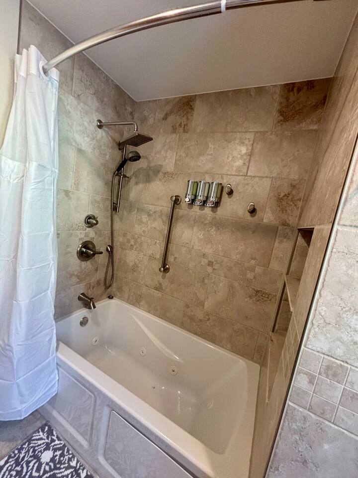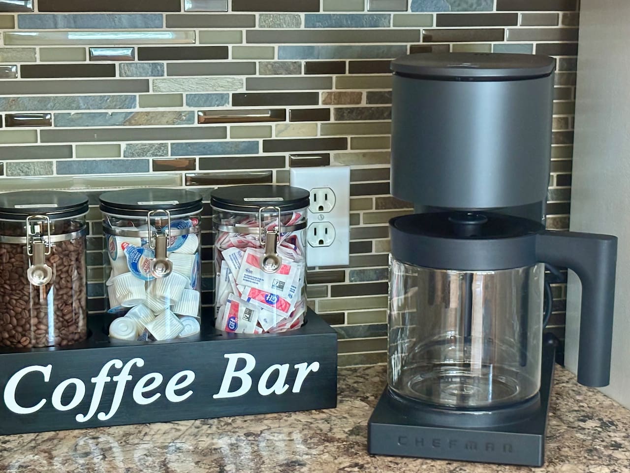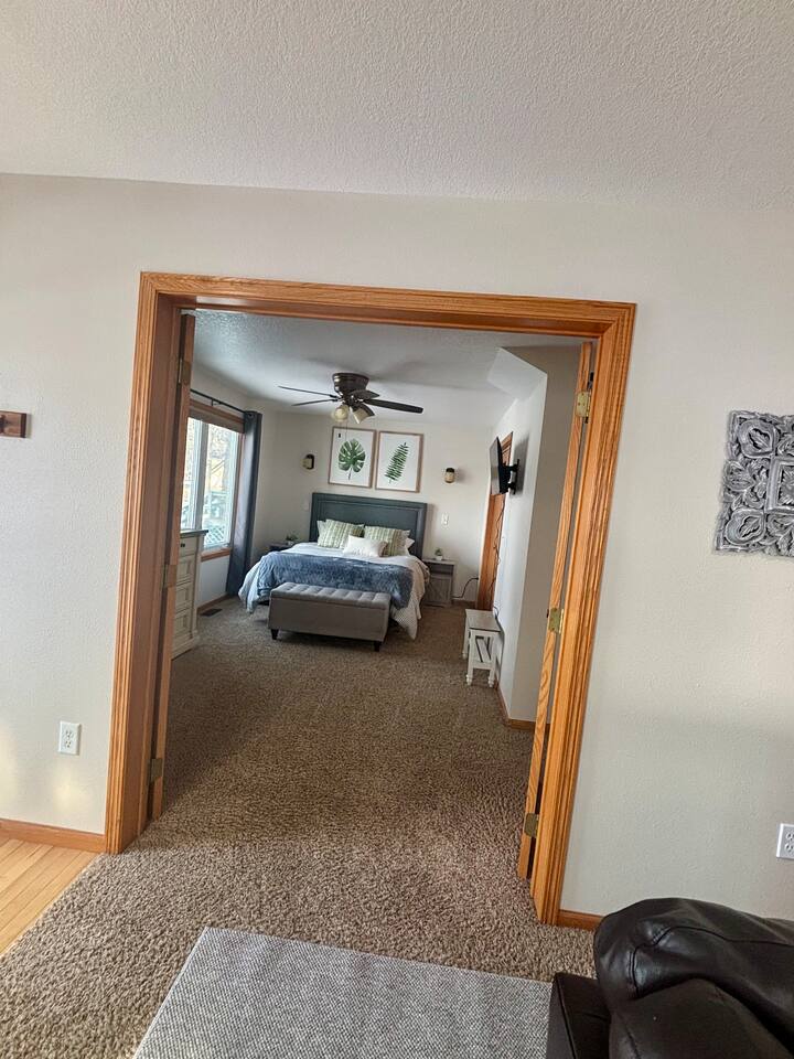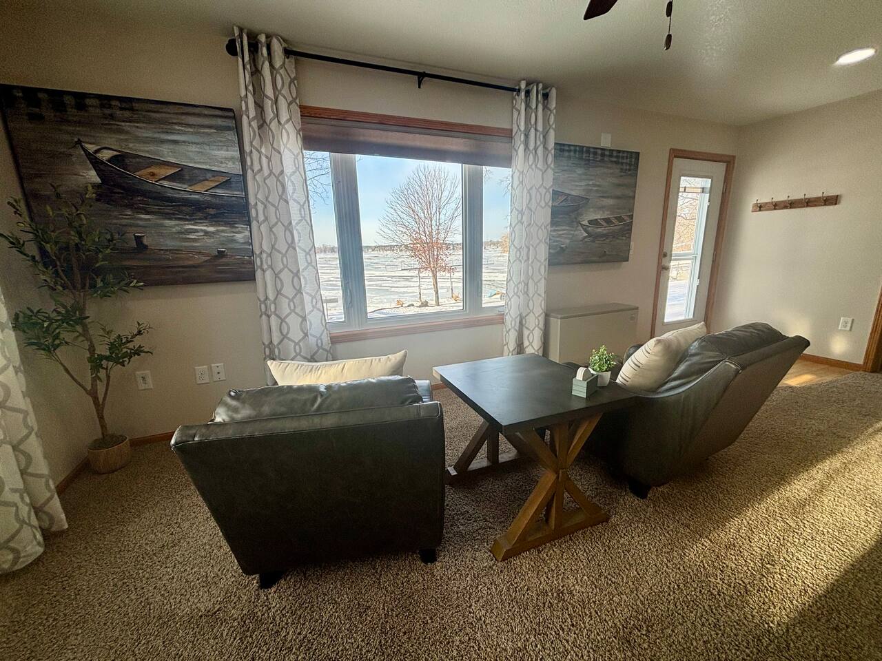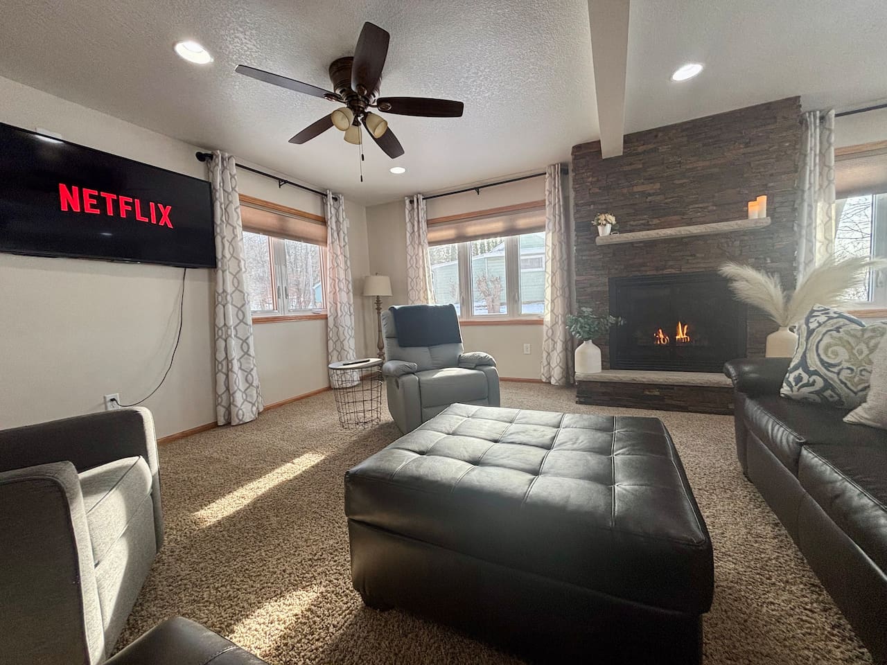 Sunset Beach Getaway is the kind of place where families slow down, spread out, and truly reconnect. From the moment you step inside, the open-concept main floor welcomes you with space to gather, laugh, and linger. Sunlight pours through large windows into the living room, where a cozy natural gas fireplace sets the tone for relaxed mornings, board-game afternoons, and quiet evenings after a day on the lake. The heart of the home is the fully stocked kitchen—designed for real cooking and shared meals. With every appliance and amenity you need, it’s easy to prepare everything from pancake breakfasts to holiday-style dinners. The dining area comfortably seats 13, with a high chair ready for the youngest guest, making this home ideal for multi-generational stays. Just off the main living space, the spacious primary bedroom offers a peaceful retreat with a queen bed, while the large main-floor bathroom feels spa-like with double sinks, heated floors, and a jet tub/shower combo. A washer and dryer on the main level make longer stays effortless. Upstairs, the home continues to impress with thoughtfully designed sleeping spaces for every age and stage. One bedroom features a queen adjustable bed for customized comfort, while another offers a twin-over-full bunk plus an additional twin—perfect for kids or teens. Two generous bedrooms feature California king beds, one paired with a twin bed and the other connected to a dedicated children’s playroom filled with LEGO Duplos, a train set, blocks, an art table, and books—giving kids their own space to imagine and play. The upstairs bathroom includes a roomy tiled walk-in shower with a removable shower head, making mornings easy for groups. Entertainment extends beyond the house into the heated detached garage game room—a favorite gathering spot year-round. Outfitted with comfortable seating, a fireplace, Big Buck Hunter and Pac-Man arcade games, air hockey, wall-mounted Connect 4, and ping pong, it’s the perfect hangout for teens, kids, and adults alike. Smart TVs are available throughout the home—including every bedroom, living spaces, and the game room—so everyone can unwind their own way. Outside, the magic of Sunset Beach truly comes alive. The back deck offers seating for six and a propane grill for easy outdoor meals, while the front deck invites morning coffee and evening conversations with cushioned outdoor seating. As the sun dips low, gather around the fire pit under glowing string lights, settle into Adirondack chairs, and watch the sky turn gold and pink. The sandy beach is ideal for all ages, with loungers ready for lakeside relaxation. A nearby shed is stocked with outdoor games, sand toys, life jackets, two kayaks, and four paddle boards—everything you need for full days on the water. For those looking to explore the lake even further, a pontoon rental is available for an additional fee, adding an extra layer of adventure to your stay. Sunset Beach Getaway isn’t just a place to stay—it’s a place to make memories. Whether you’re hosting a family reunion, traveling with grandparents and grandkids, or gathering friends for a lakeside escape, this home was designed for comfort, connection, and unforgettable moments by the water.