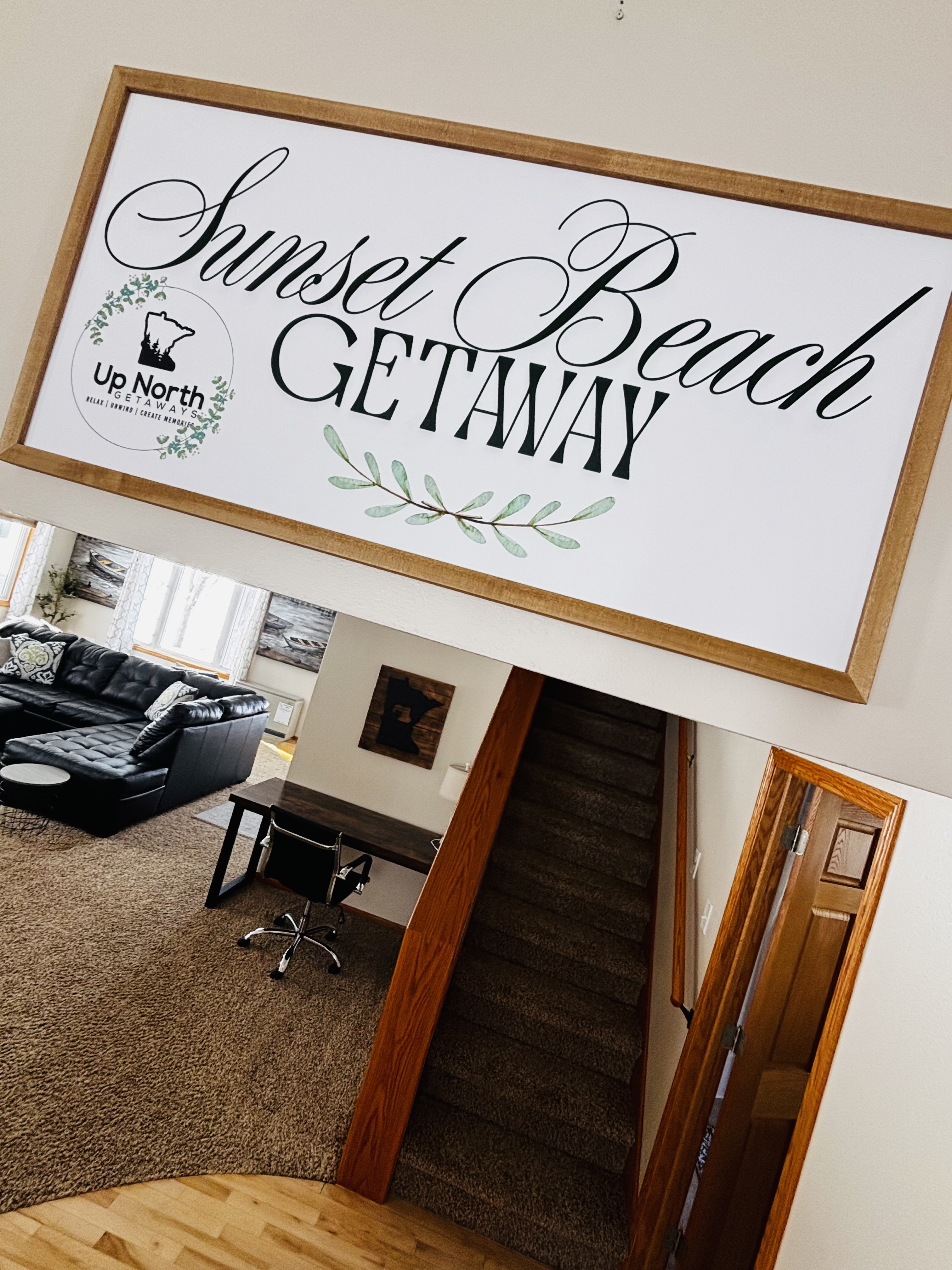 Designed for generations to gather, Sunset Beach Getaway pairs refined lakefront comfort with unforgettable fun. Enjoy a private sandy beach, peaceful sunsets, and effortless lake days swimming or cruising with our optional pontoon rental. Evenings bring fireside connection or friendly competition in the garage game room with ping pong, air hockey, arcade games, and Xbox X. Thoughtfully updated with space for everyone, this is where family memories are made—book your stay today.
